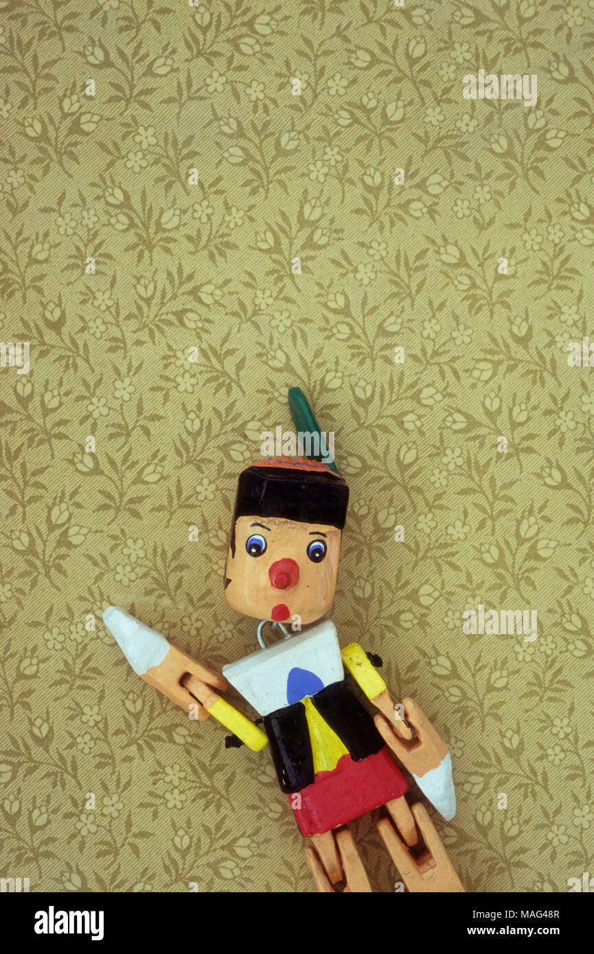 Painted Wooden Model Of Pinocchio With Flexible Joints Standing