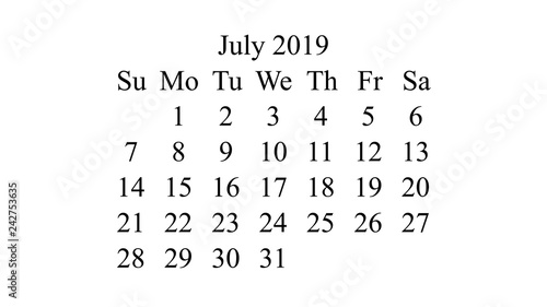 July 2019 Calendar 2019 Vector Simple Design Minimal 2019
