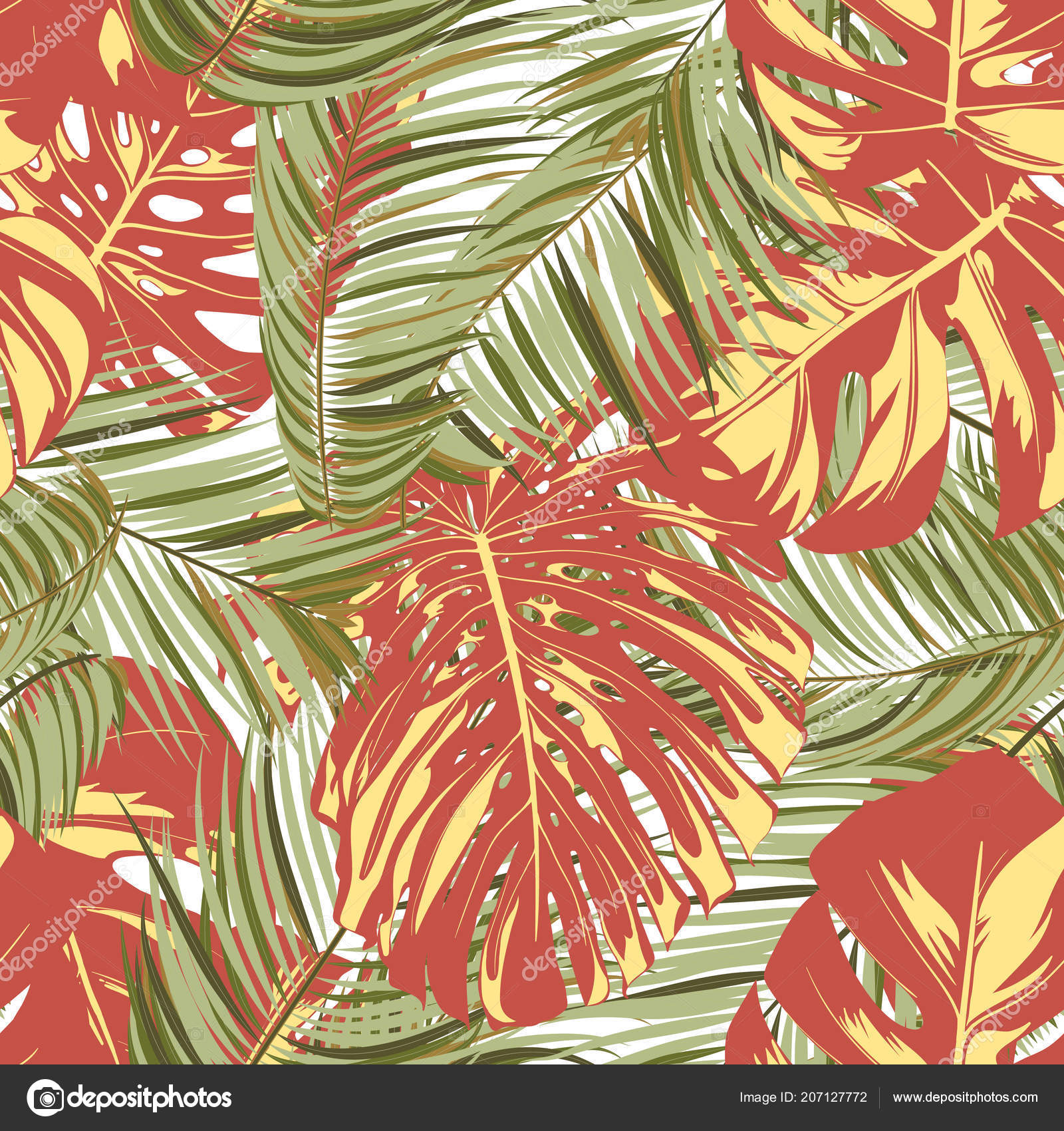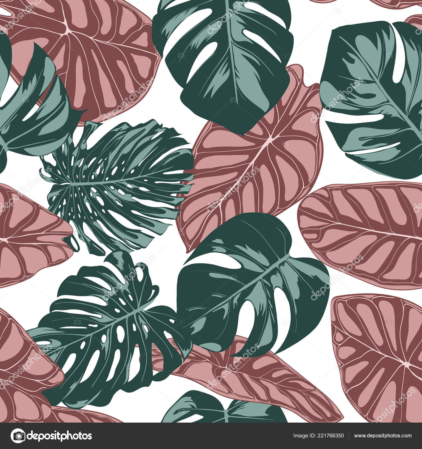 Tropical Jungle Leaves Vector Seamless Pattern Philodendron