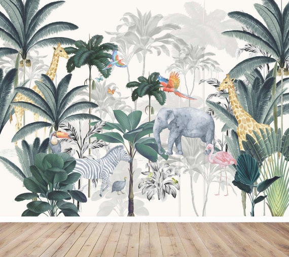 Vintage Jungle Mural Wallpaper Peel And Stick Wallpaper Eazywallz