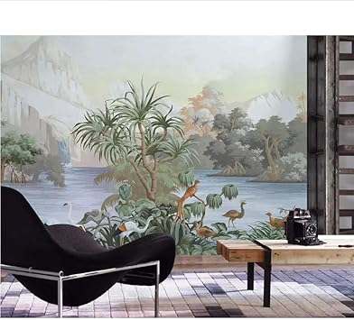 Forest Wallpaper Vintage Jungle Wall Mural Lake Landscape Wall