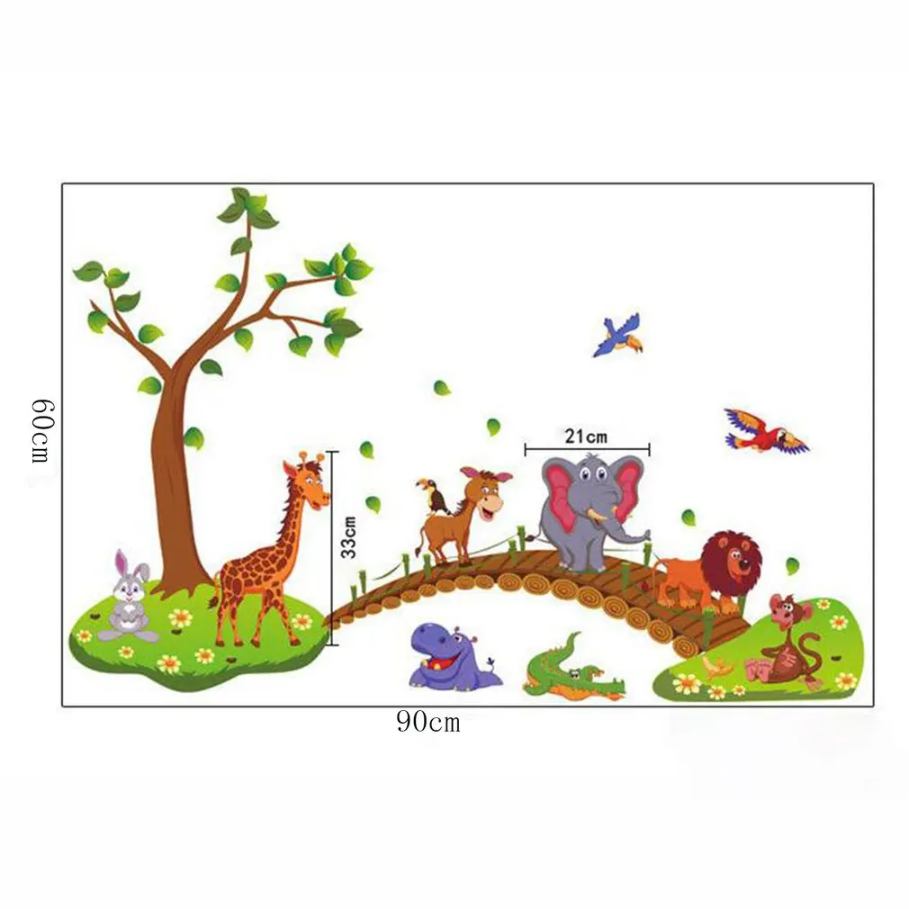 Kawaii Big Jungle Animals Bridge Pvc Wall Stickers Kids Bedroom