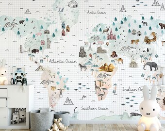 Amazon Com Murwall Kids Map Of The World Nursery Wallpaper Animal
