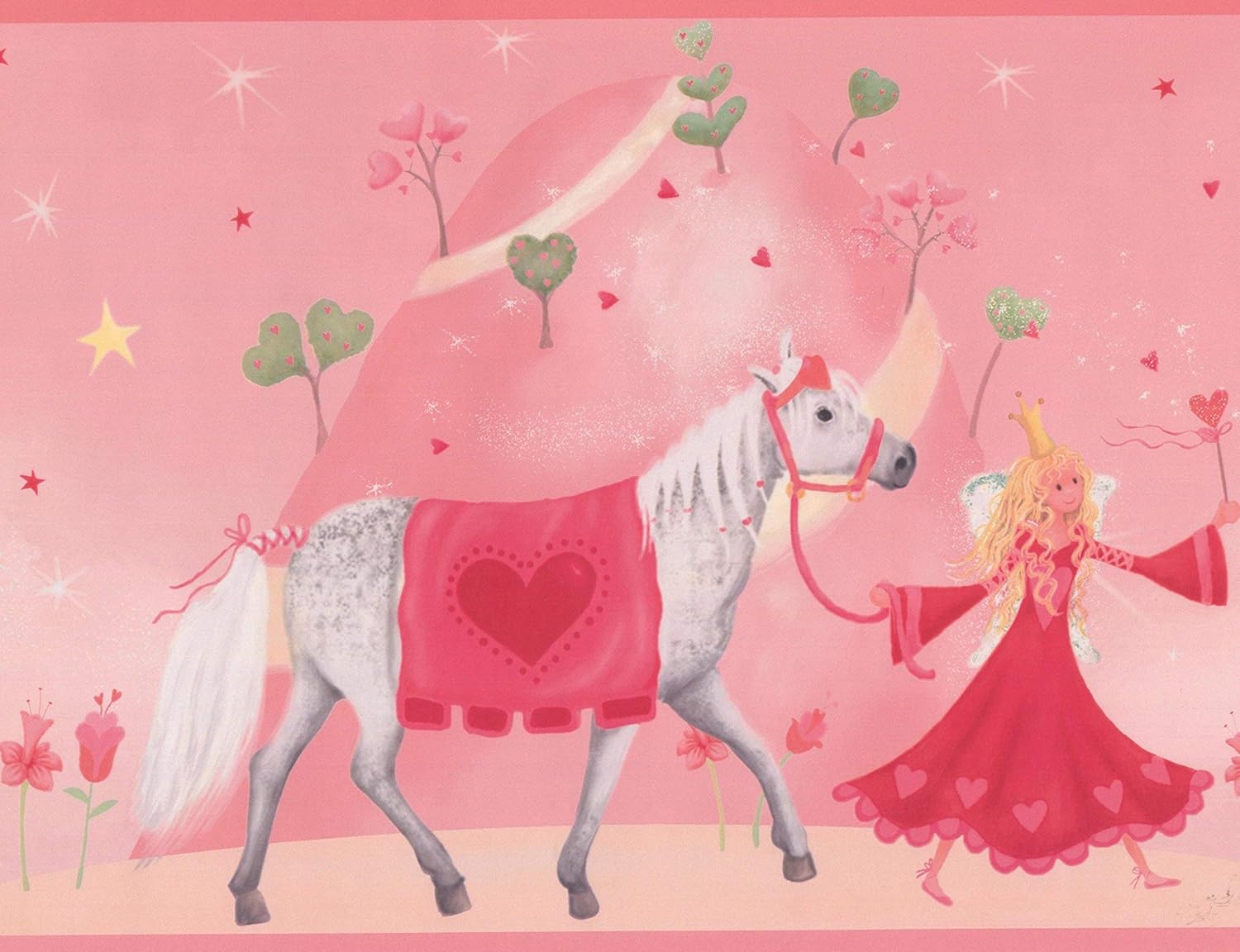 Princess Castle Horse Red On Pink Wallpaper Border For Kids Roll