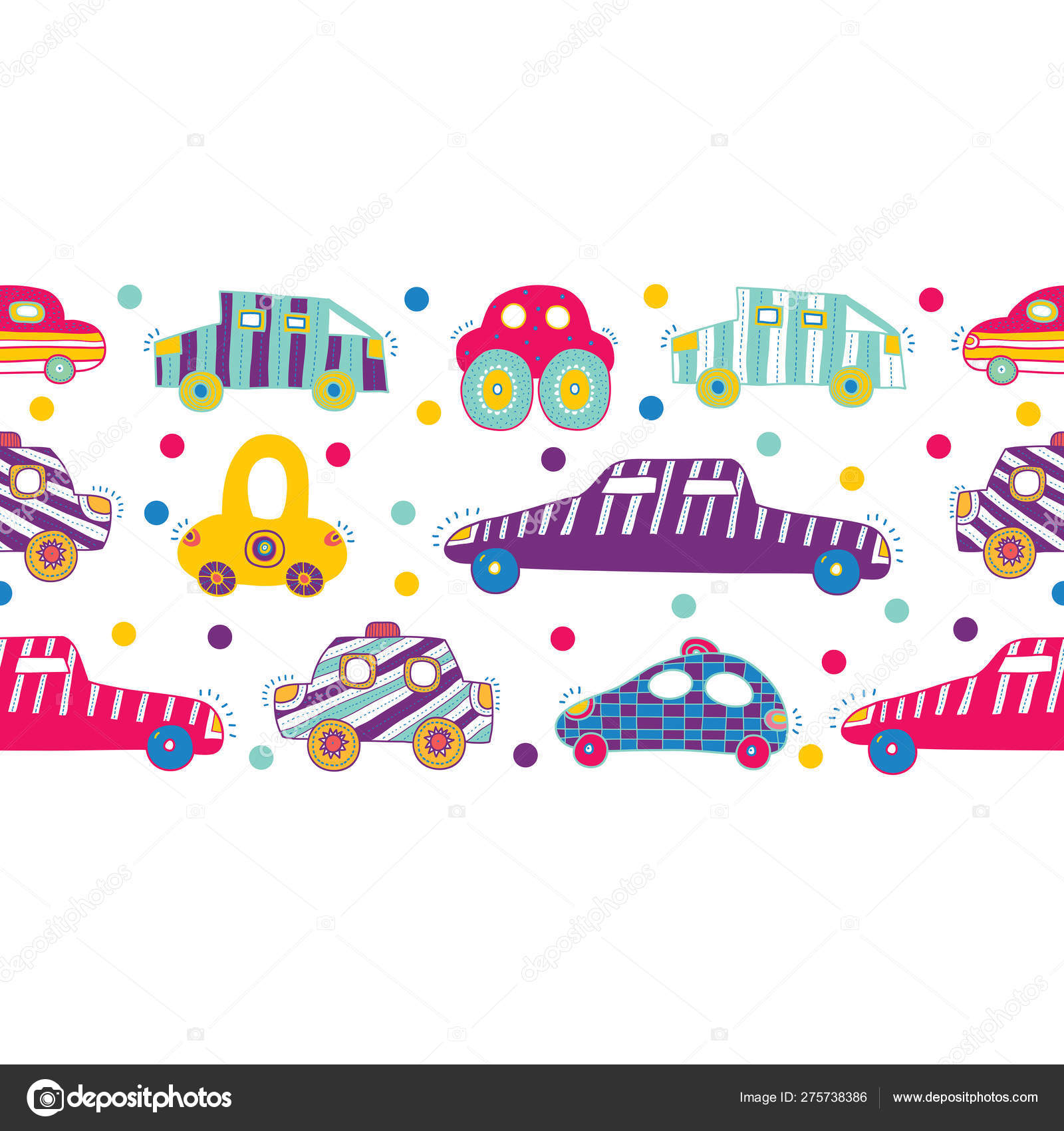 Cute Cars Vector Seamless Border Kids Automobile Can Used