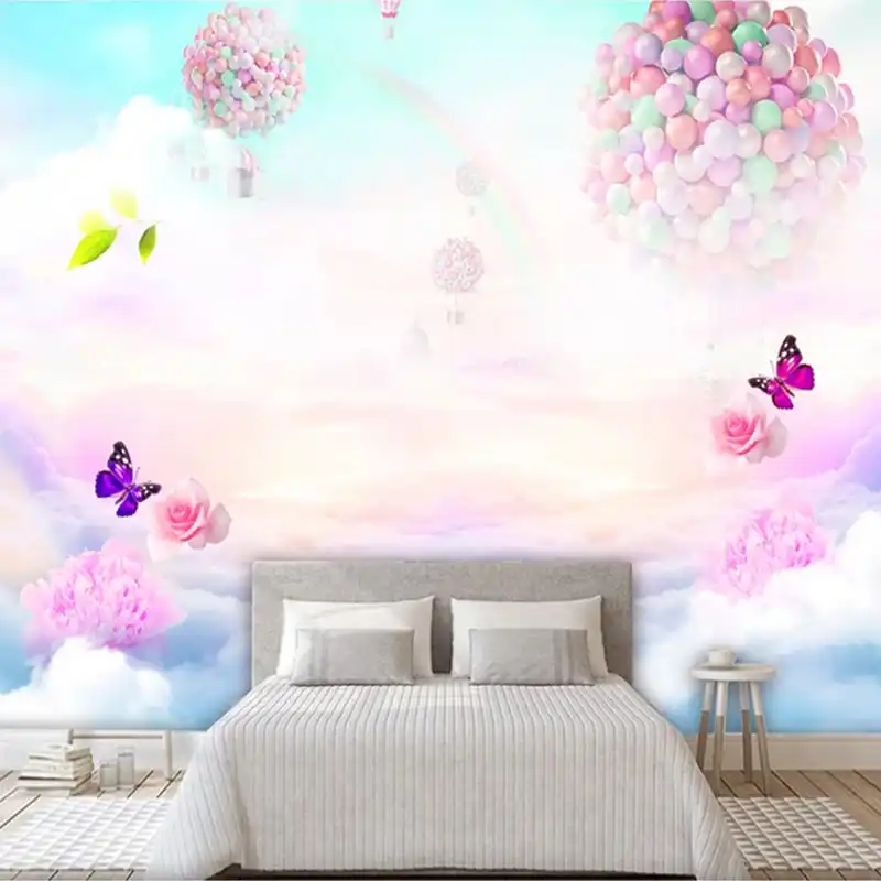 Custom Mural Wallpaper For Kids Room Flower Butterfly Balloon