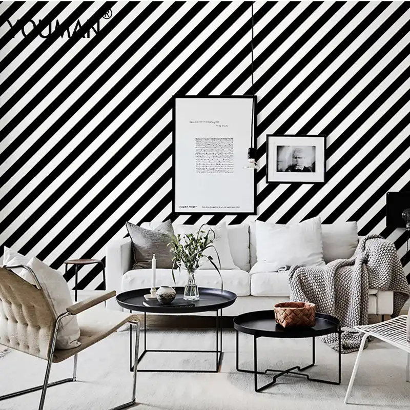 Modern Simple Black White Grid Wallpaper Waterproof Washable