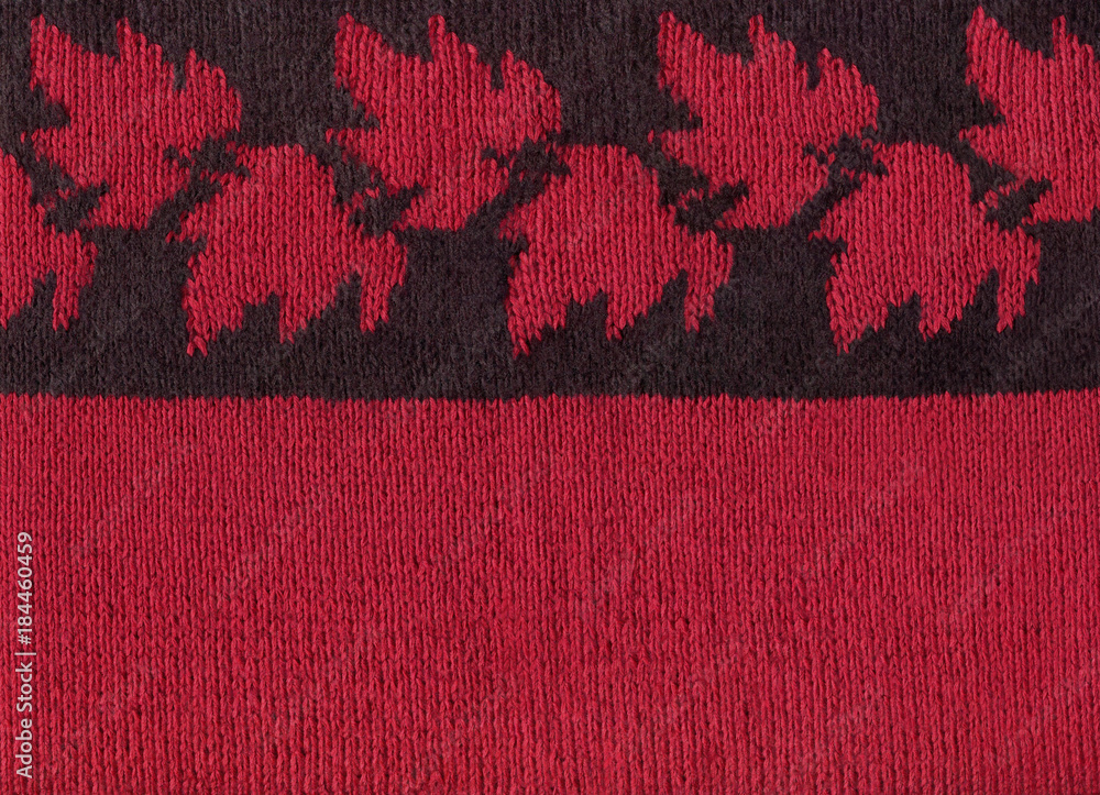 Red And Black Knitted Cloth With A Pattern Of Leaves Decorative