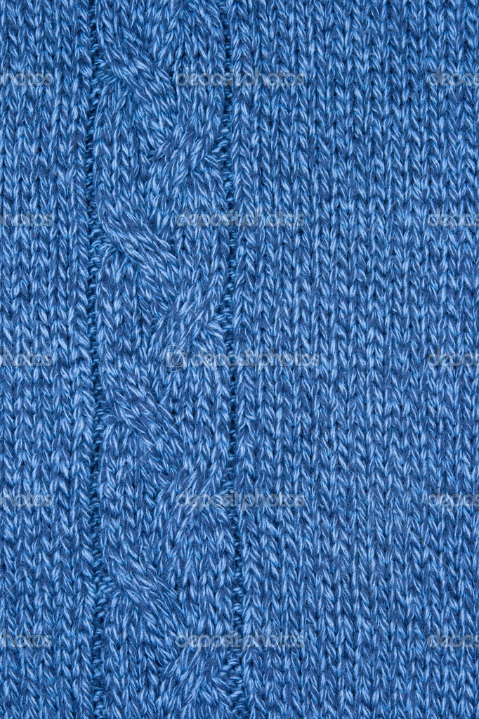 Knit Texture Of Blue Wool Knitted Fabric With Cable Pattern As