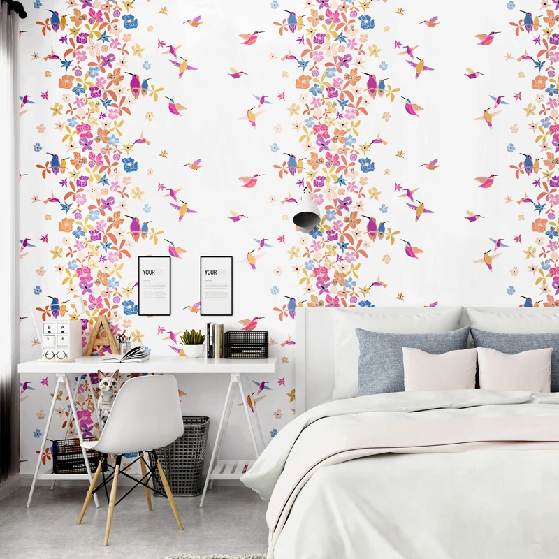 Korean Wallpaper Green Purple Flower Birds Pastoral Style Japanese