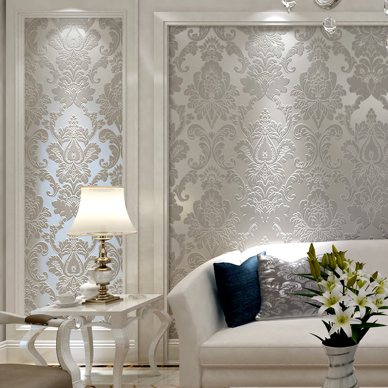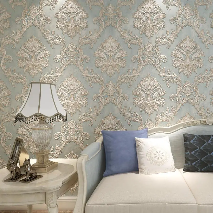 European Damascus 3d Foam Wallpaper Luxury Embossed Large Flower