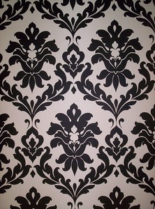 Black And White Large Print Damask Prepasted Vinyl Wallpaper