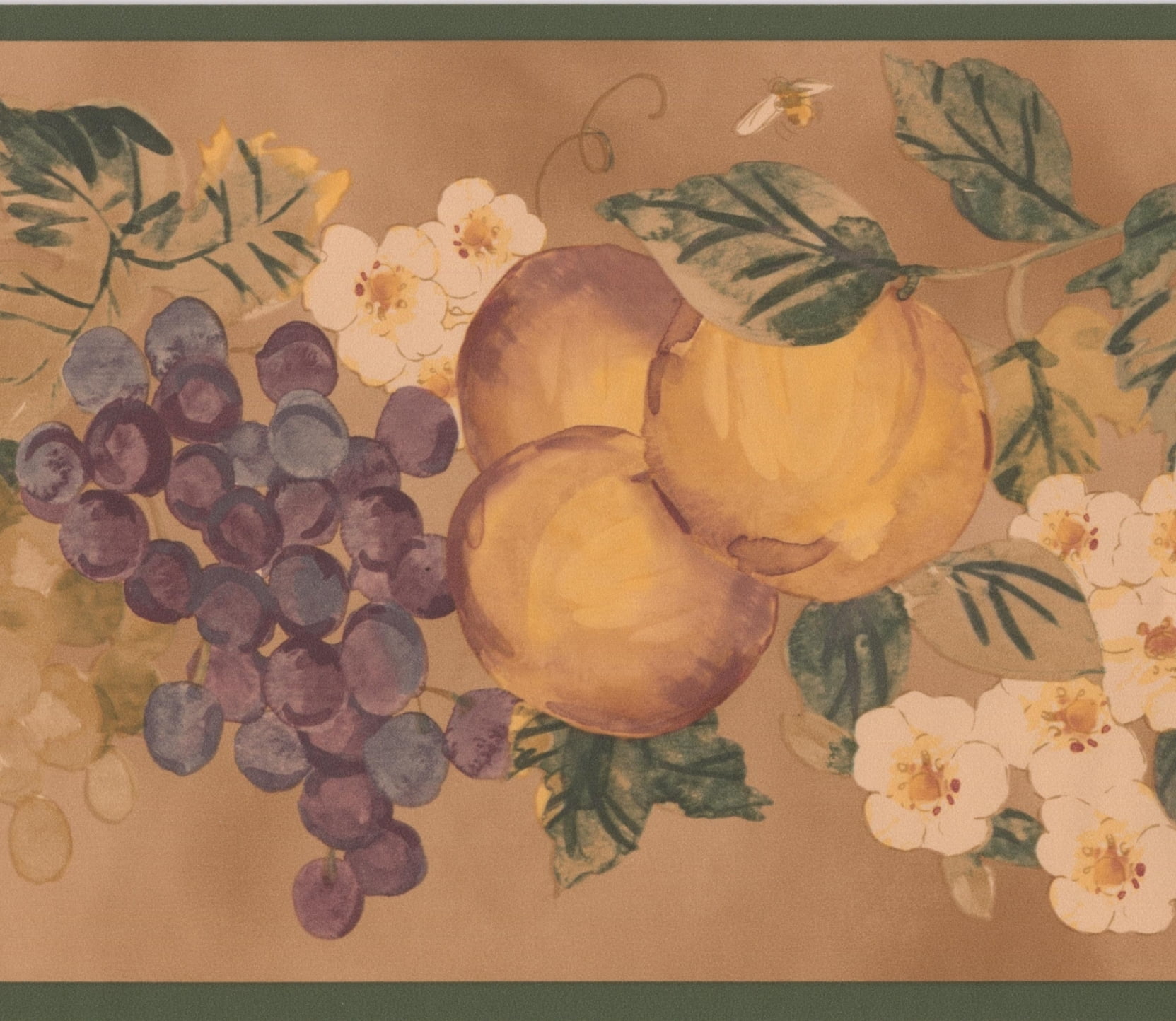 Wallpaper Border Purple Grapes Peaches White Flowers Brown Wall