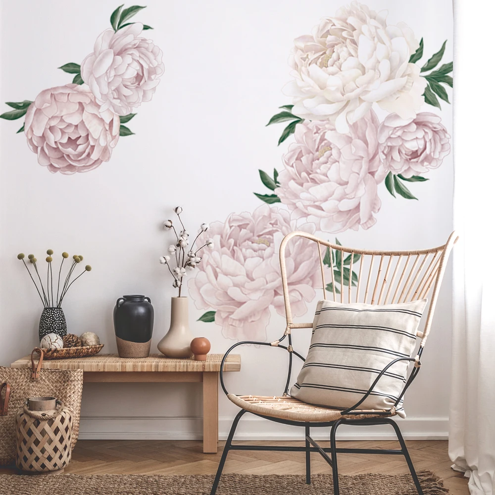 Poeny Light Pink Flowers And Leaves Wall Sticker Living Room