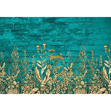 Wall26 Large Wall Mural Light Blue Flowers On Teal Color Brick