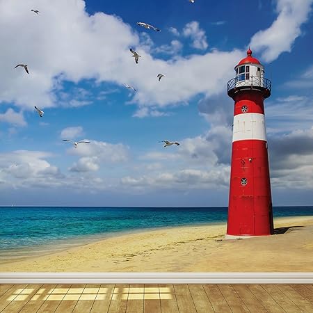 Norwall Lighthouse Flowers Ranch On Beach Retro Prepasted