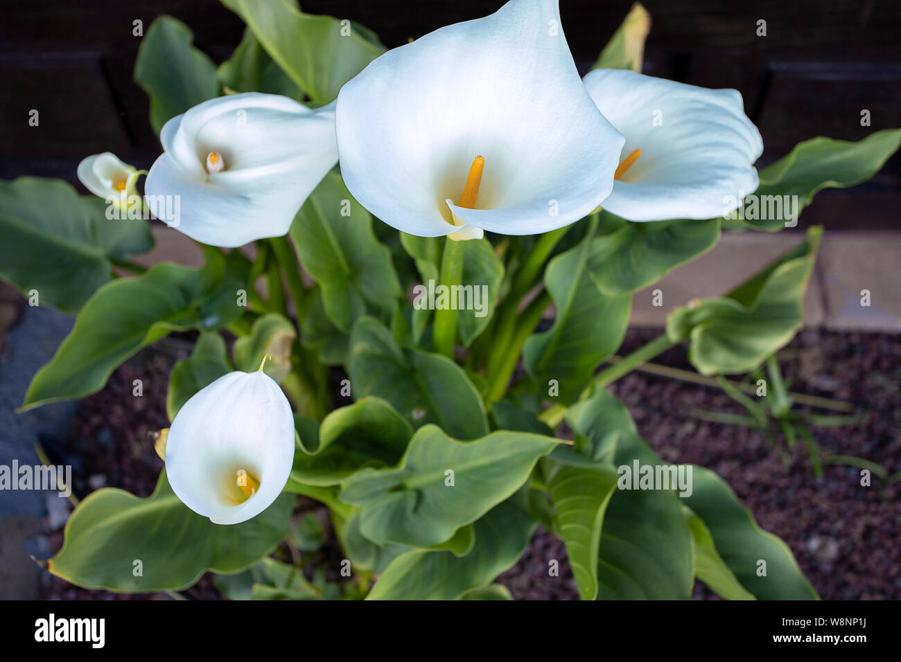 White Calla Lilies Flower Growing The Garden Beautiful Vibrant