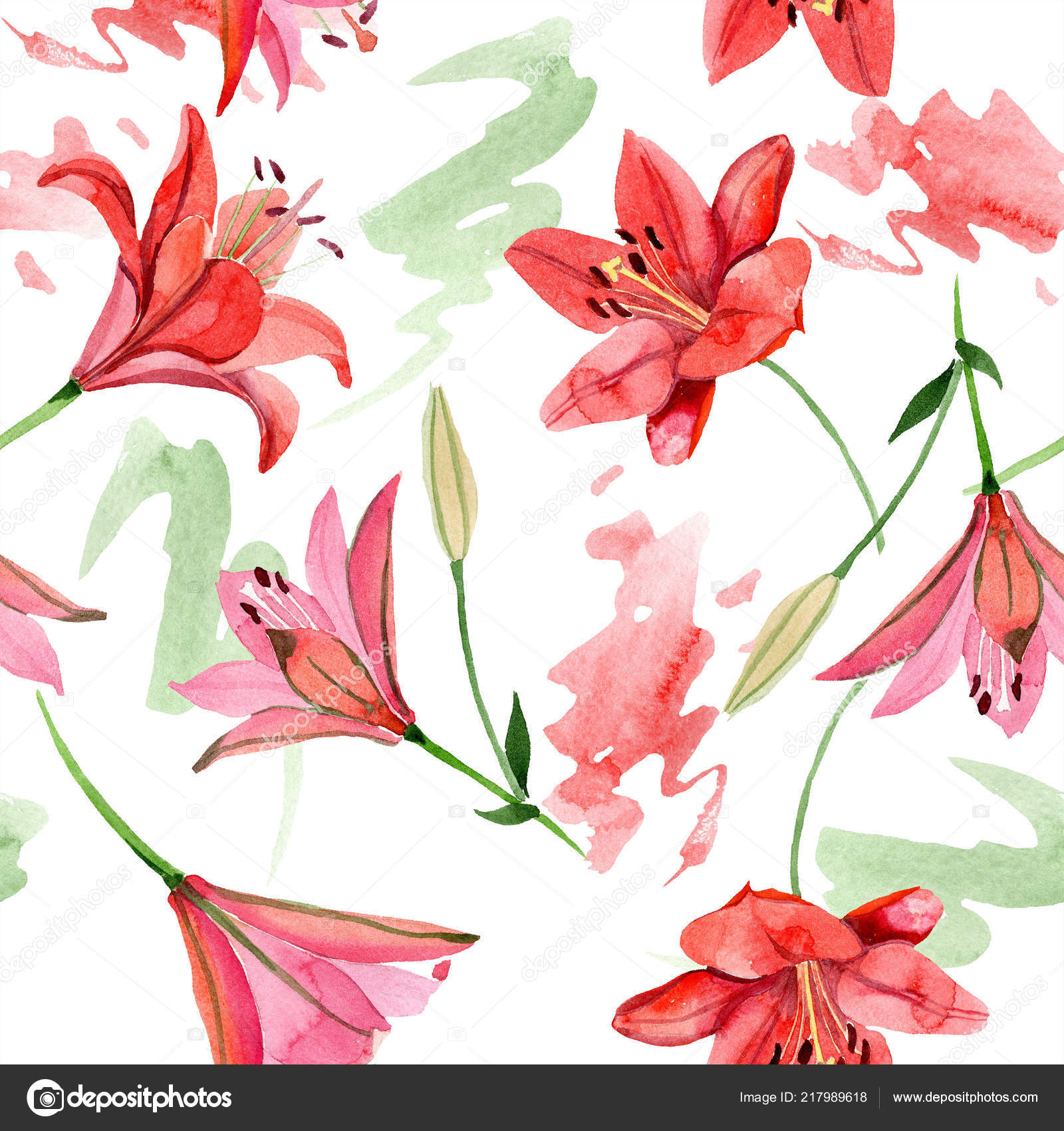 Watercolor Red Lily Flower Floral Botanical Flower Seamless