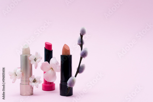 Female Wallpaper With Cosmetics Different Colored Lipsticks