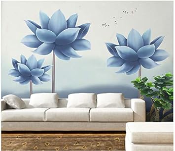 Wall Mural 3d Wallpaper Hand Painted Literary Blue Lotus Leaf