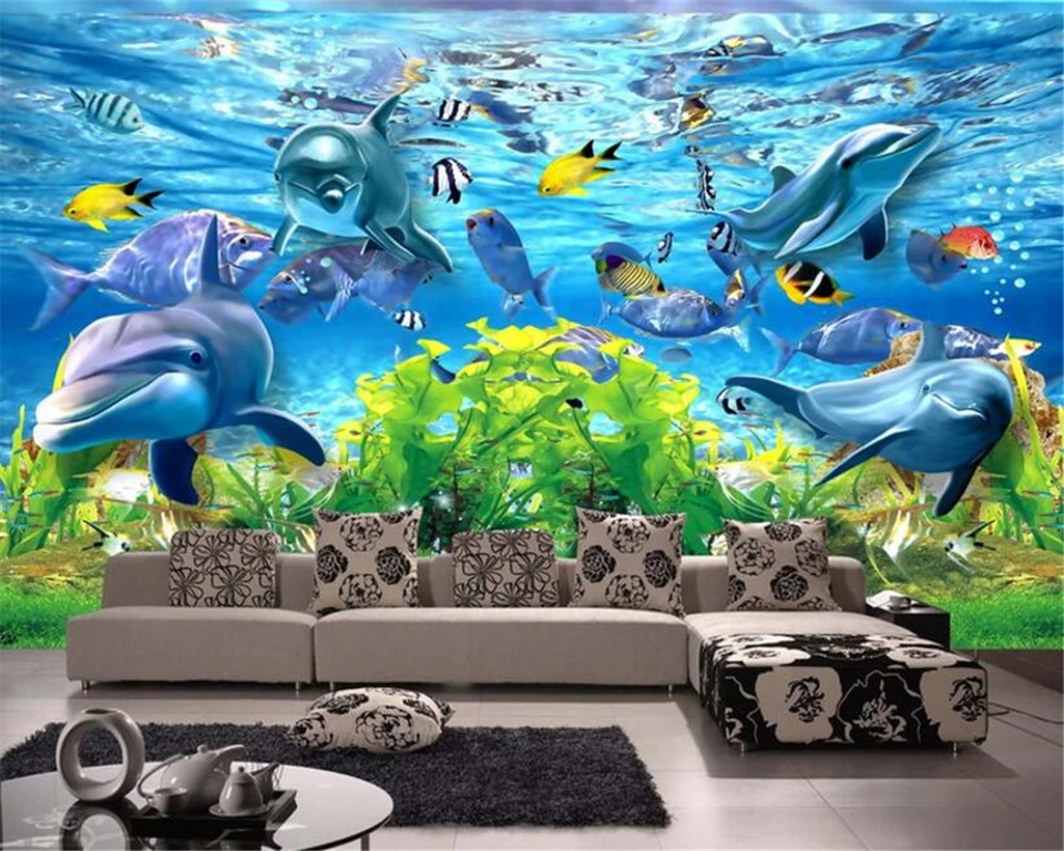 Custom 3d Kids Ocean Wallpaper Mural Live Fish Dolphin Aquarium Tv