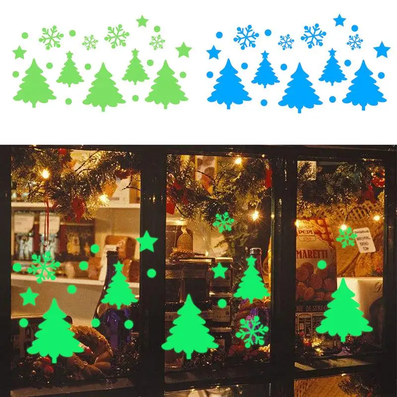 Wallpaper Sticker Merry Christmas Glow Snowman Pine Window Glass