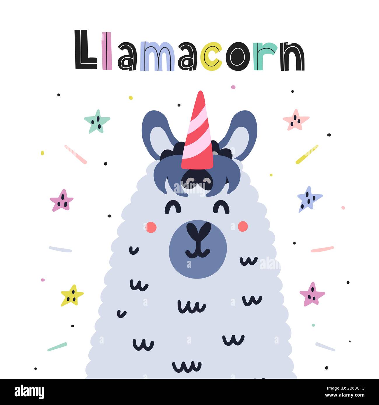 Cute Cartoon Lama Doodle Vector Illustration Llamacorn Stock