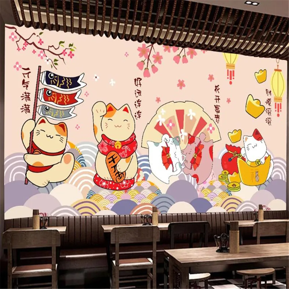 3d Wallpaper Custom Photo Mural Lucky Cat Japanese Food Sushi