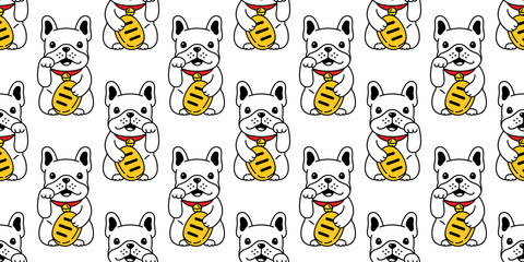 Dog Seamless Pattern French Bulldog Lucky Cat Japan Maneki Neko