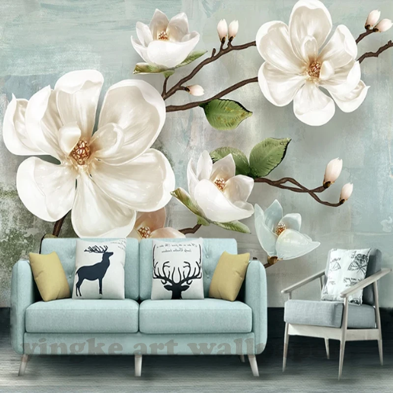 3d Look Magnolia Flower Wall Sticker Hall Wallpaper Floral Cartling