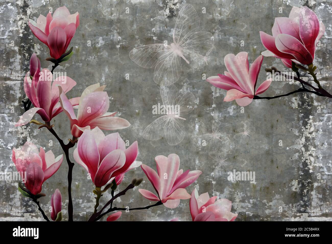 Magnolia Flower Paper Background Wall Mural Wallpaper Murals Kanea