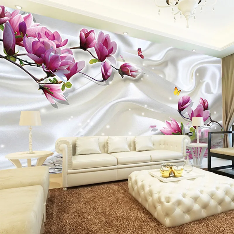 Modern Simple Magnolia Flowers Silk Wallpaper Living Room Tv Sofa