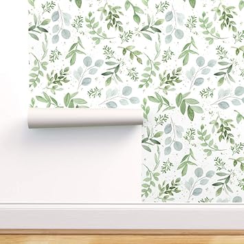 Spoonflower Peel And Stick Removable Wallpaper Eucalyptus Green
