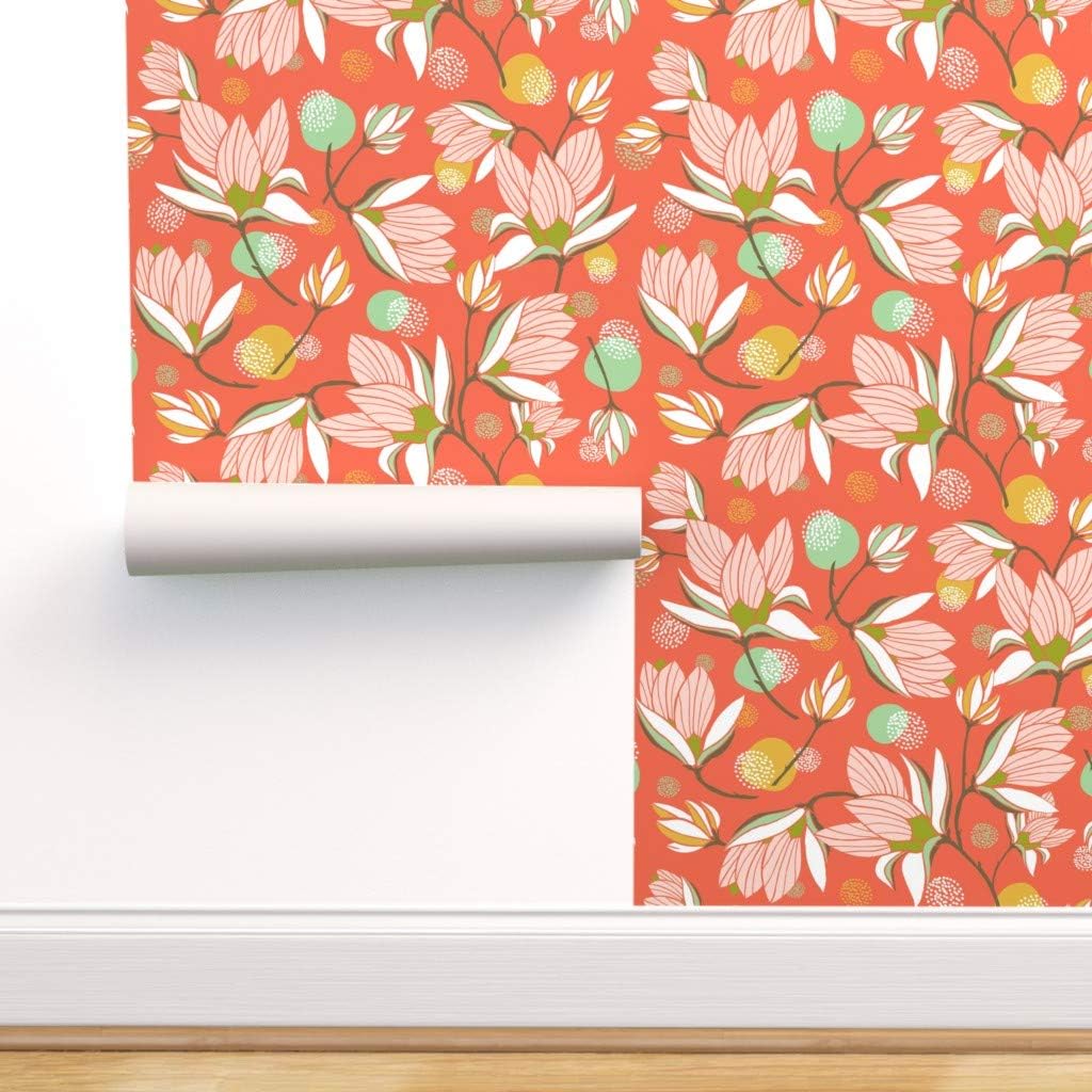 Spoonflower Peel And Stick Removable Wallpaper Magnolia Flowers