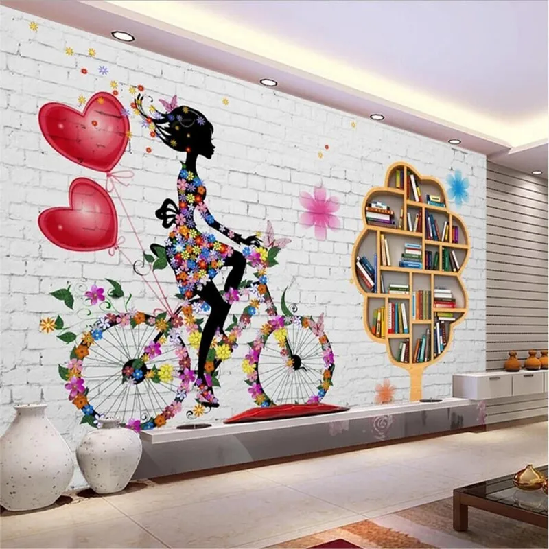 Custom Creative Fashion White Brick Wall Bookshelf Tv Background
