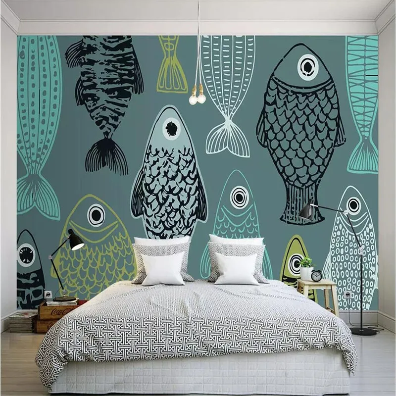 Modern Minimalist Hand Painted Fish Wallpaper Manufacturers