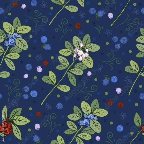 Multicolor Seamless Patterrn With Blooming Blueberry And