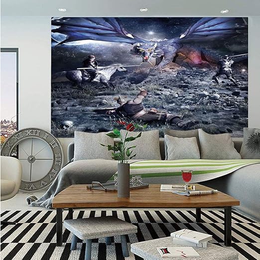 Amazon Com Sosung Fantasy Wall Mural Dragon Fighting With