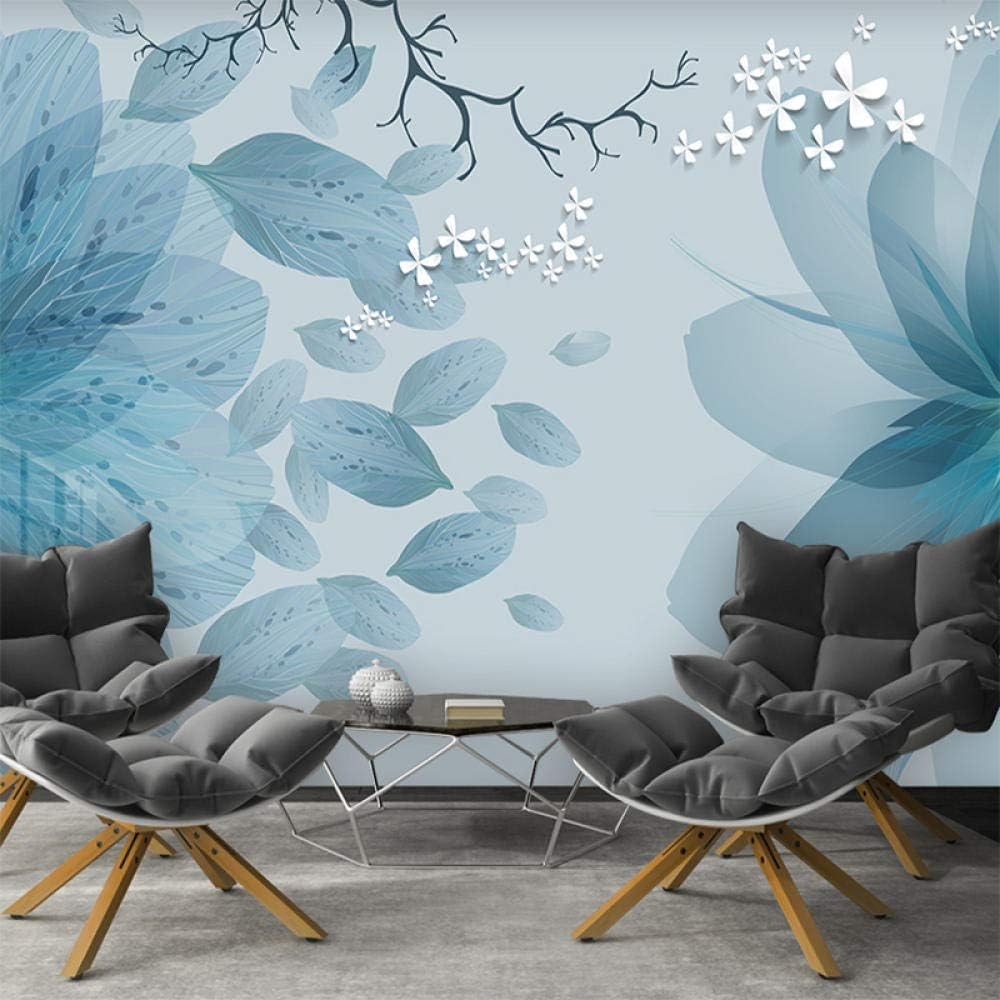 Modern Minimalist Blue Tone Flowers Butterfly Mural Living Room