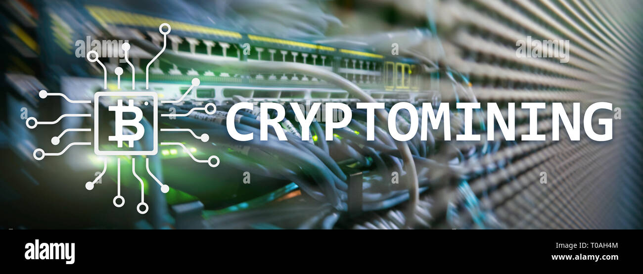Cryptocurrency Mining Concept On Server Room Background Web Site