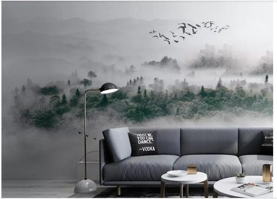 Foggy Mountain Wallpaper Removable Misty Forest Wall Mural For Etsy