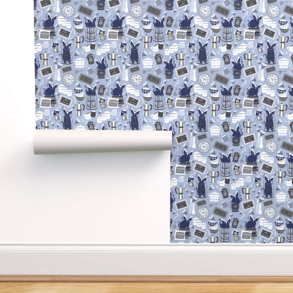 Spoonflower Non Pasted Wallpaper Modern Farmhouse Cat Coffee Tea