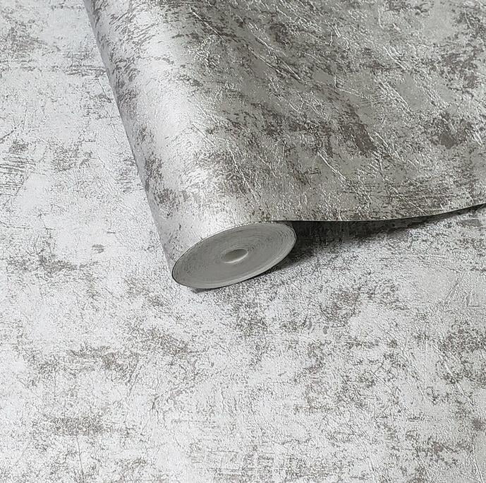 76034 Modern Wallpaper Silver Grey Metallic Foil Plain Plaster