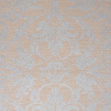 Swirls Khaki Silver Damask Modern Wallpaper For Walls Sample