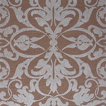 Swirls Brown Silver Damask Modern Wallpaper For Walls Double