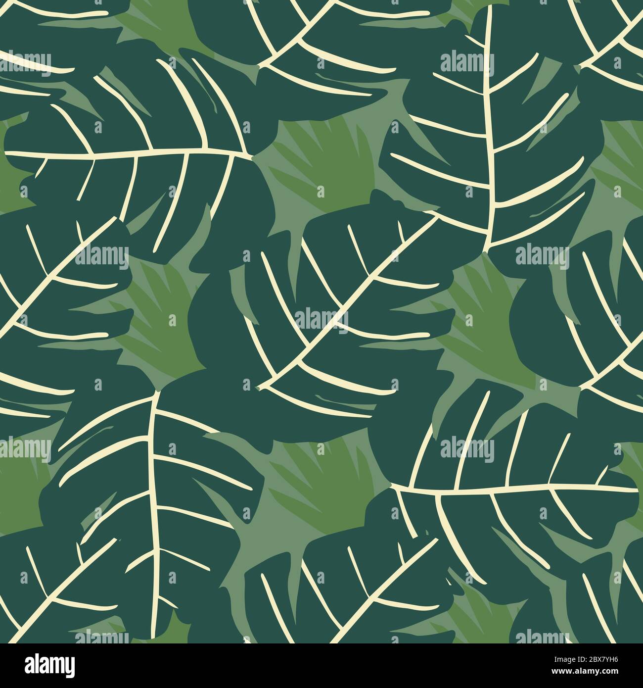 Green Tropical Leaves Seamless Pattern Vector Illustration