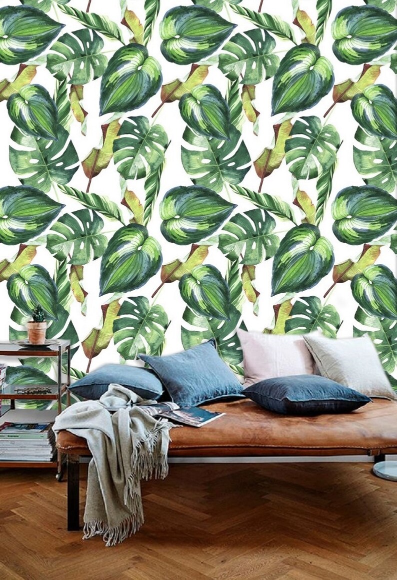 Palm Monstera Leaf Wallpaper Removable Wallpaper Etsy