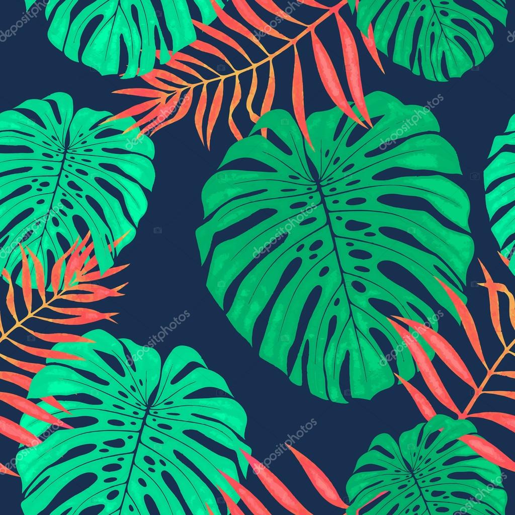 Tropical Seamless Pattern With Palm And Monstera Leaves Design