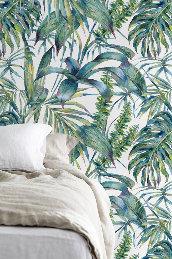 Palm Monstera Leaf Wallpaper Removable Wallpaper Etsy
