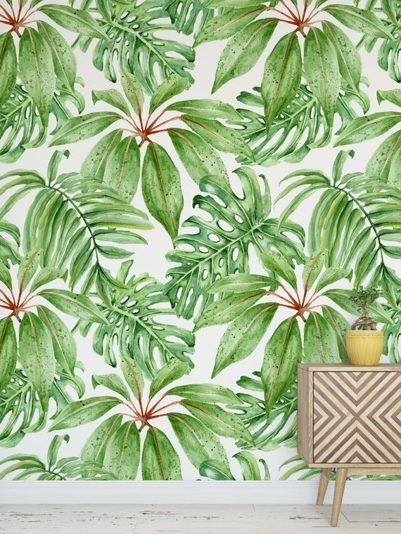 Monstera Leaf Wallpaper Removable Wallpaper Temporary Etsy
